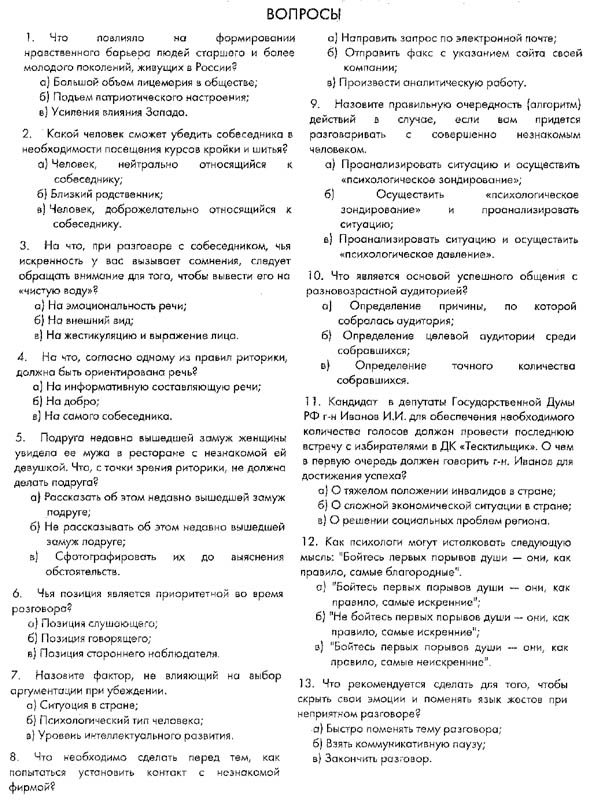 70. Что не является эффективным способом борьбы с вопросами-капканами?