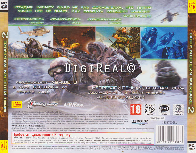 Вы покупаете официальный ключ активациии для Steam, CALL OF DUTY: Modern Warfare 2 в виде отсканированного изображения с лицензионной коробки игры от компании 1C.