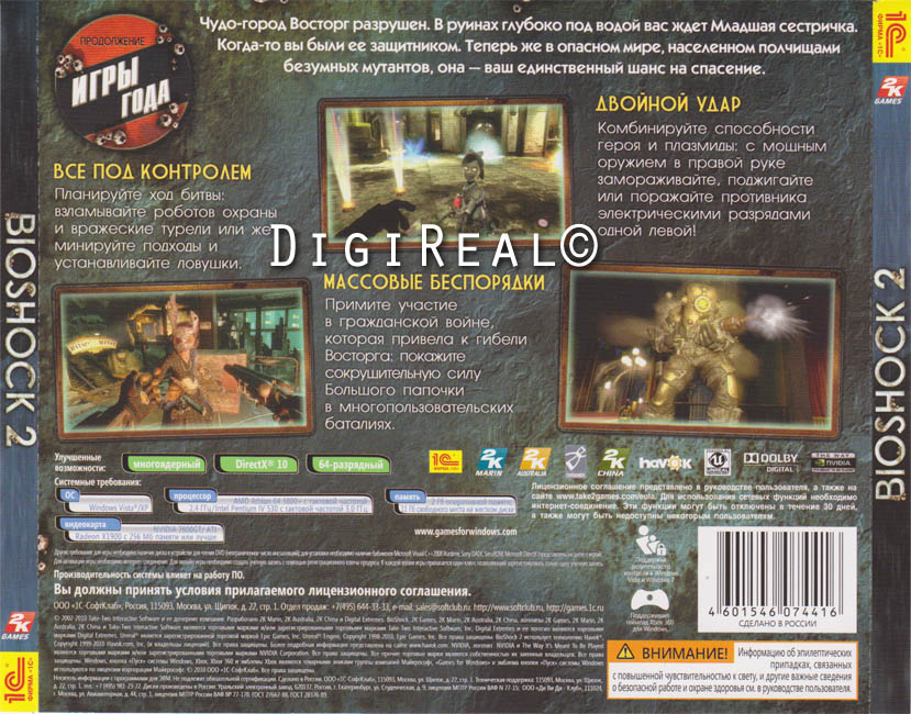 Лицензионный ключ активации из коробки с игрой Bioshock 2 от компании 1С.