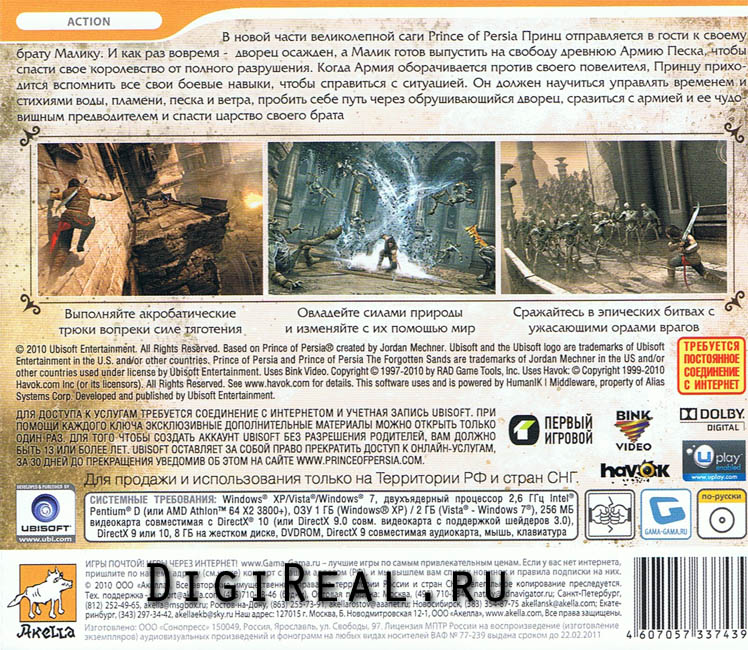 Лицензионный ключ активации из коробки с игрой Prince of Persia. Забытые пески от компании "Акелла".