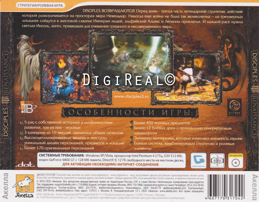Лицензионный ключ активации из коробки с игрой Disciples 3: Ренессанс от компании "Акелла".