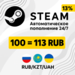 АВТОПОПОЛНЕНИЕ Баланса STEAM 24/7 - RUB, KZT, UAH