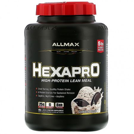 Незаменимые аминокислоты (EAA)Аминокислоты с разветвленными цепями (BCAA)L-лейцин2454 мгL-валин1492 мгL-изолейцин1346 мгL-гистидин586 мгL-лизин1118 мгL-метионин955 мгL-фенилаланин1824 мгL-треонин1970 мгL-триптофан345 мгL-аланин923 мгL-аргинин786 мгL-аспарагиновая кислота2081 мгL-цистеин257 мгL-глутаминовая кислота4902 мгL-глицин438 мгL-пролин1403 мгL-серин1053 мгL-тирозин1068 мгТипичный аминокислотный состав натуральным способом производится из 100% источников цельного белка и может незначительно отличаться. Наука, инновации, качество, результатыУтром или вечером | В любое время | До или после тренировки5 фунтов протеина премиального качества Замечательный вкус, полезный протеиновый коктейль 6 источников протеина длительного высвобождения Днем, вечером — в любое время25 г белка, 6 видов белка, высвобождение в течение 8 часовПищевая добавка с протеиномНатуральные и искусственные ароматизаторыПроверено на отсутствие запрещенных веществСертификат Trusted by Sport — Informed-Choice.OrgКаждая партия проверена в лабораторииСертификация производства cGMPИсточник 100% цельного протеина Подсластители: ацесульфам калия и сукралозаЗаконопроект 65 штата Калифорния Зачем принимать Hexapro ™?