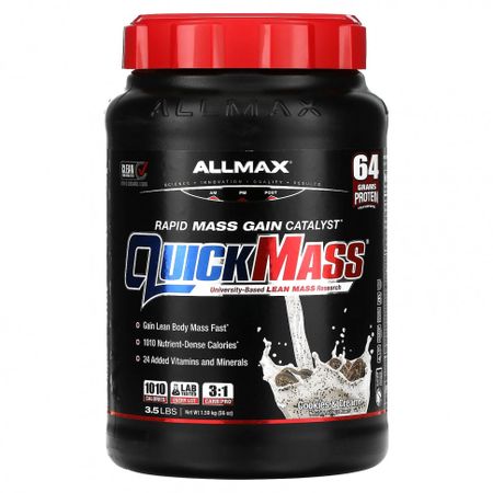 Описание Чистка для спортсменов — протестировано на запрещенные веществаНаука, инновации, качество, результатыAM — PM — Post64 г белка — 1 на 4 мерные ложкиУниверситетские исследования на прирост сухой мышечной массыБыстрое увеличение сухой мышечной массы тела1010 богатых питательными веществами калорий24 витамина и минерала1010 калорий1Каждая партия проверена в лаборатории3:1 — Carb:Pro1Натуральные и искусственные ароматизаторыСертификат Informed Choice: вы доверяете — мы проверяем Регулярно проверяется на наличие запрещенных веществПроизводится на предприятии, имеющем регистрацию текущей надлежащей производственной практики (cGMP)Источник 100% цельного протеинаБез искусственных красителейКошерный молочный продуктПодслащенный сукралозойПоддерживает прирост мышечной массы: Более 1000 калорий в одной порции!1010 калорий в порции — 4 мерные ложкиРезультаты университетских исследований для набора максимальной массы тела: Каждая порция Quickmass® содержит 1010 калорий для наращивания мышечной массы в холодной воде, молоко не требуется! В ходе одного 8-недельного исследования Gold-Standard (двойное слепое плацебо-контролируемое исследование), проведенного в Университете штата Калифорния, участники, получавшие то же количество калорий, что и в 2 порциях добавки Quickmass® в день, набрали в 4,5 раза больше сухой массы, а обхват груди увеличился на 2,5 см (1 дюйм).MassPro™64 г белка с замедленным высвобождением для набора массы: MassPro™ обеспечивает быструю доставку белков в течение длительного времени для наращивания мышечной массы. Они действуют непрерывно в течение всего дня, способствуя восстановлению и росту. Продукт способствует увеличению синтеза белка для мышц и набору мышечной массы.Carb Plex™: Оптимальное соотношение углеводов и белков (3:1):CARBPLEX ™ обеспечивает калории, необходимые вашему организму для роста в течение всего дня, без добавления сахара! CARBPLEX ™ всасывается в 20 раз медленнее, чем сахар, обеспечивая МАССОВОЕ ТОПЛИВО для ваших тренировок! Углеводная смесь QUICKMASS® содержит полезные, длинноцепочечные и сложные углеводы, такие как батат, овсяные хлопья и киноа, а также научно изученные и проверенные углеводы, такие как цикло-D и растворимая кукурузная клетчатка, натуральный пребиотик.Непревзойденное качество: гарантия качества AllMaxЧистота и эффективность каждого ингредиента и каждой партии протестированы в лаборатории, чтобы гарантировать стабильное качество продукции. Quickmass® проходит проверку качества ALLMAX в соответствии с эксклюзивным 5-этапным протоколом.Подходит для профессиональных спортсменов — проверено на запрещенные веществаЭтот продукт прошел проверку на наличие запрещенных веществ для уверенности спортсменов и пользователей добавок в рамках программы осознанного выбора.1 на 4 мерные ложки Рекомендации по применению Принимать по 1 мерной ложке 4 раза в день. Смешайте или взболтайте 1 мерную ложку порошка с прибл. 125 мл холодной воды или обезжиренного молока непосредственно перед употреблением. …
