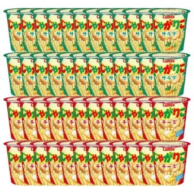 Ассортимент Calbee Jagariko Коммерческое использование Купить в коробке Салат 57 г x 24 шт. Сыр 55 г x 24 шт. Всего 48 шт. Поставляется с оригинальной наклейкой Большой