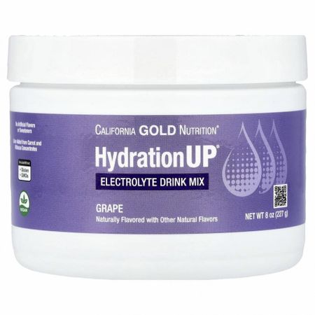 HydrationUP™ от California Gold NutritionПорошок для приготовления электролитического напитка. Ассорти из 5 вкусовЦитрус, виноград, фруктовый пунш, смесь ягод и тропические фруктыНизкокалорийные электролиты с витаминами C и EПодходит для веганов и вегетарианцевБез искусственных красителей, ароматизаторов и подсластителейПродукт не содержит глютена, ГМО и соиПроизводится на предприятии, которое имеет регистрацию текущей надлежащей производственной практики (cGMP) и проходит независимые проверкиГарантия 100% Gold Guarantee