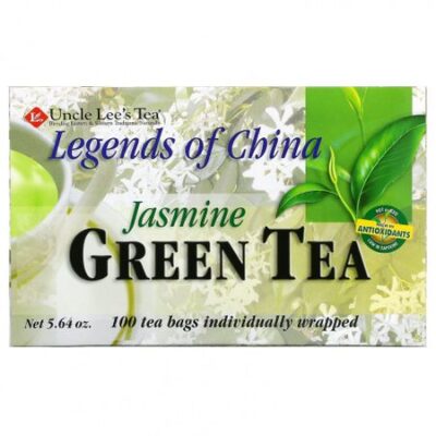 Молодые зеленые листья чая и цветы жасмина. Содержание кофеина в нашем зеленом чае составляет приблизительно 20 миллиграммов кофеина на чашку.