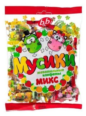 Жевательные фруктовые конфеты "Мусики" придадут бодрость и заряд энергии, а веселый дизайн упаковки подарит хорошее настроение как детям, так и взрослым.