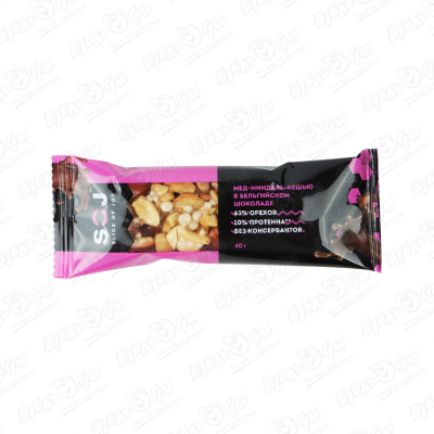 Батончик SOJ мед-миндаль-кешью в бельгийском шоколаде 40г