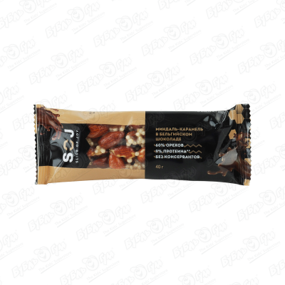 Батончик SOJ миндаль-карамель в бельгийском шоколаде 40г