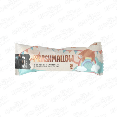 Батончик SOJ маршмеллоу с соленой карамелью в молочном шоколаде 30г