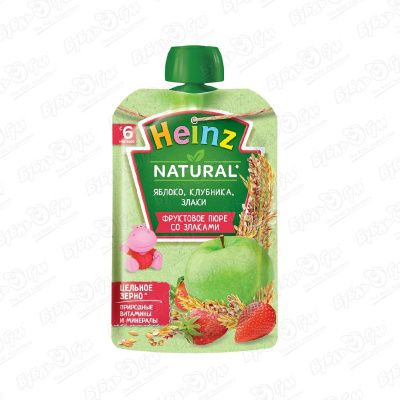 Пюре Heinz яблоко-клубника со злаками 90г с 6мес