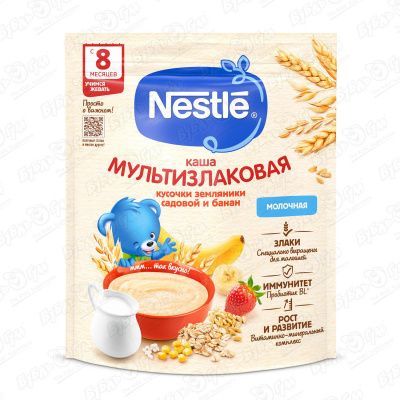 Каша Nestle молочная мультизлаковая банан с кусочками земляники 200г с 8мес БЗМЖ