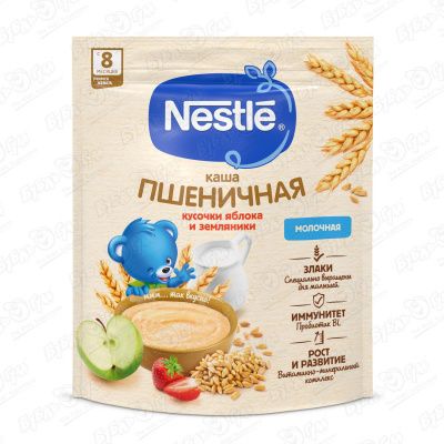 Каша Nestle молочная пшеничная яблоко-земляника 200г с 8мес БЗМЖ