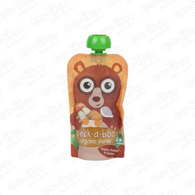 Пюре peek-a-boo organic puree яблоко-персик со вкусом печенья 113г с 6мес