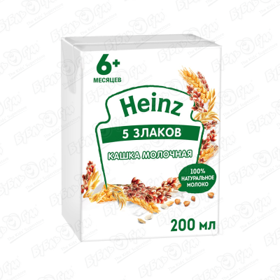 Каша Heinz молочная 5 злаков 200мл с 6мес БЗМЖ