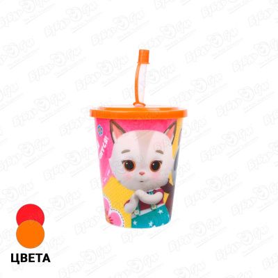 Стакан пластиковый с трубочкой Кошечки-Собачки 400мл в асссортименте