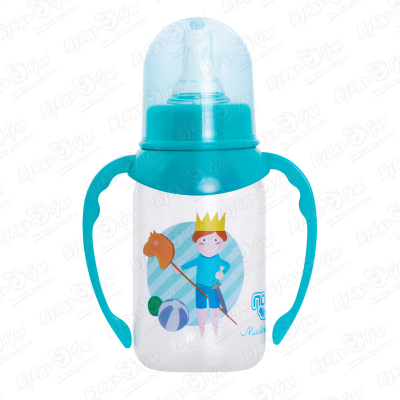 Бутылка ПОМА пластиковая с ручкой силиконовой соской средний поток 125 мл, с 4 мес