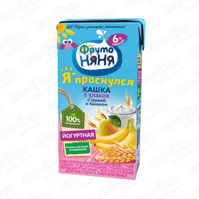 Каша ФрутоНяня молочная 5 злаков груша-банан 200мл от 6мес БЗМЖ