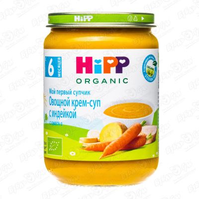 Пюре HiPP Organic овощной крем-суп с индейкой 190г с 6мес