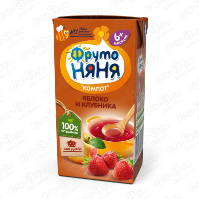 Компот ФрутоНяня яблоко-клубника 200мл с 6мес
