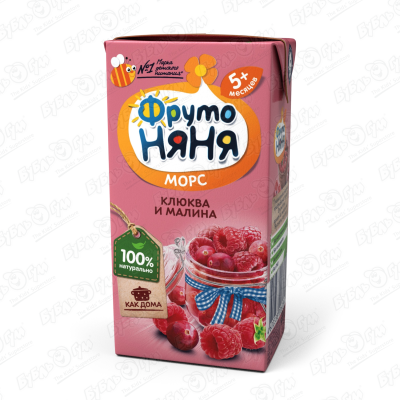 Морс ФрутоНяня клюква-малина 200мл с 5мес
