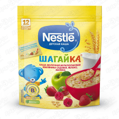 Каша Nestle Шагайка молочная мультизлаковая земляника-малина-яблоко 200г с 12мес БМЗЖ