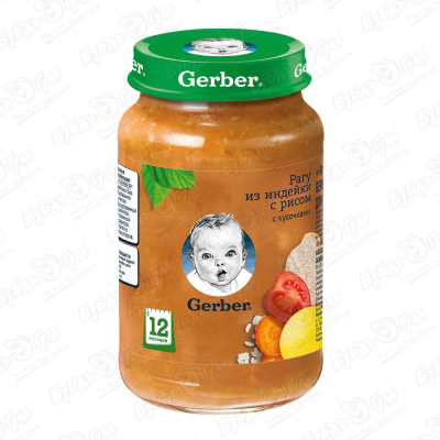 Пюре Gerber рагу индейка c рисом 190г с 12мес