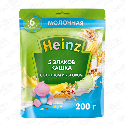 Каша Heinz молочная 5 злаков банан-яблоко 200г с 6мес БЗМЖ