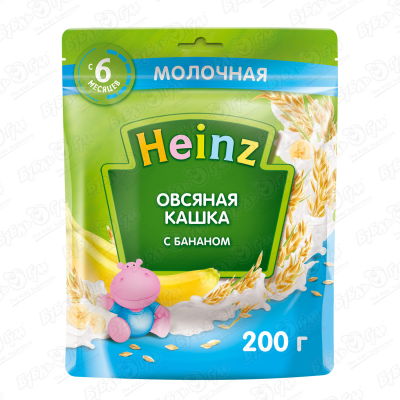 Каша Heinz молочная овсяная банан 200г с 6мес БЗМЖ