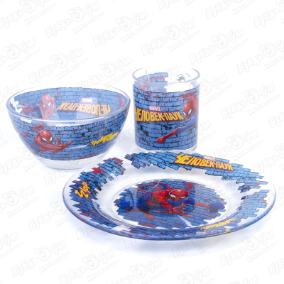 Набор посуды супергерой Человек-паук стекло 3предмета