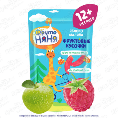 Мармелад ФрутоНяня фруктовые кусочки яблоко-малина 15г