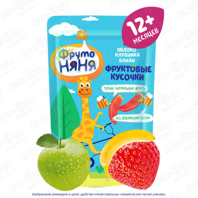 Мармелад ФрутоНяня фруктовые кусочки яблоко-клубника-банан 15г