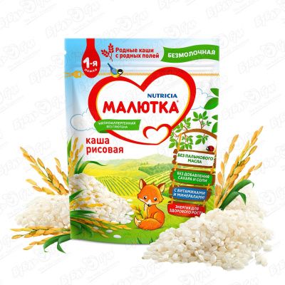 Каша Малютка безмолочная рисовая 200г с 6мес