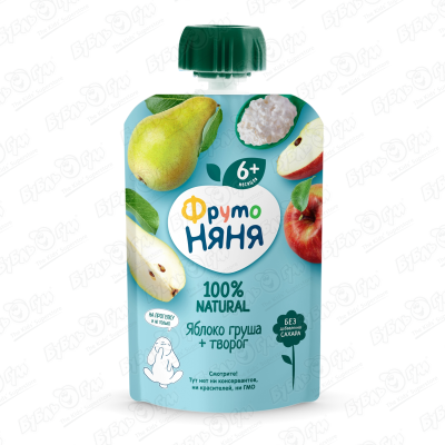 Пюре ФрутоНяня яблоко-груша-творог 90г с 6мес БЗМЖ