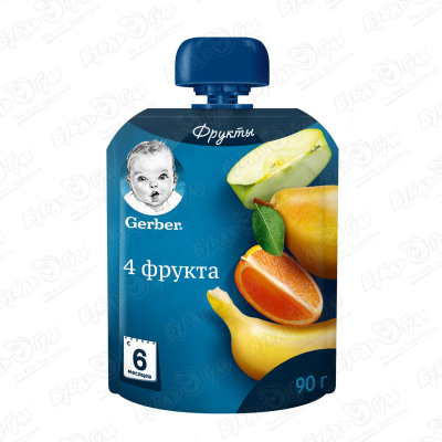 Пюре Gerber 4 фрукта 90г с 6мес