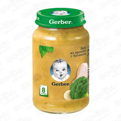 Пюре Gerber кролик-брокколи 190г с 8мес