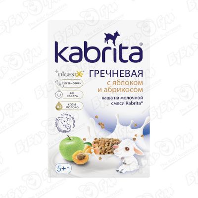 Каша Kabrita гречневая с яблоком и абрикосом на козьем молоке 180г с 5мес БЗМЖ