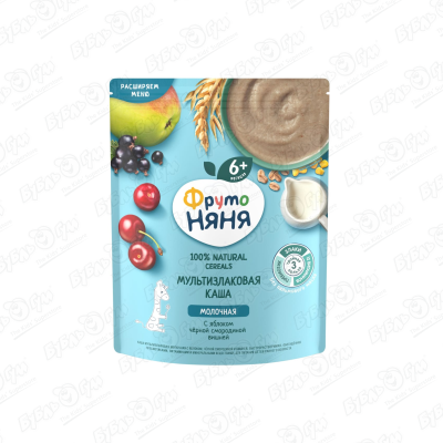 Каша ФрутоНяня молочная мультизлаковая яблоко-черная смородина-вишня 200г с 6мес БЗМЖ