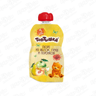 Пюре ТОПТЫШКА яблоко-груша-персик 90г с 5мес