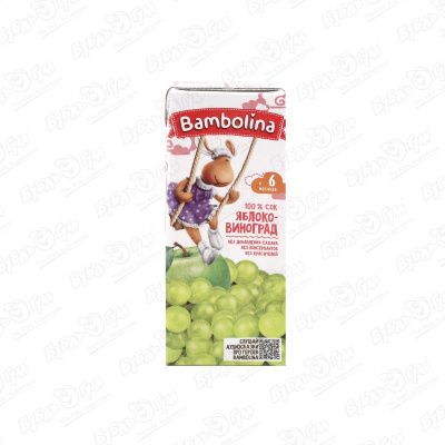 Сок Bambolina яблоко-белый виноград 200мл с 6мес