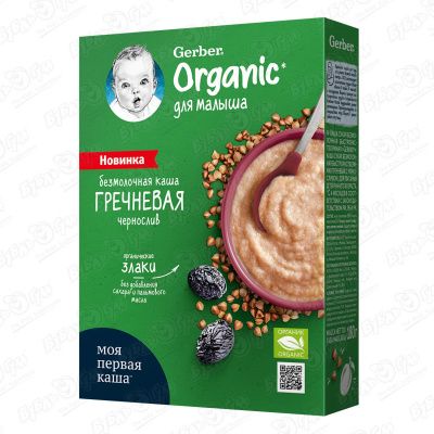 Каша Gerber Organic безмолочная гречневая чернослив с органическими злаками180г