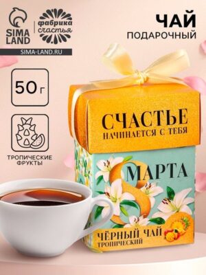 Чай подарочный чёрный «8 Марта», вкус: тропические фрукты, 50 г