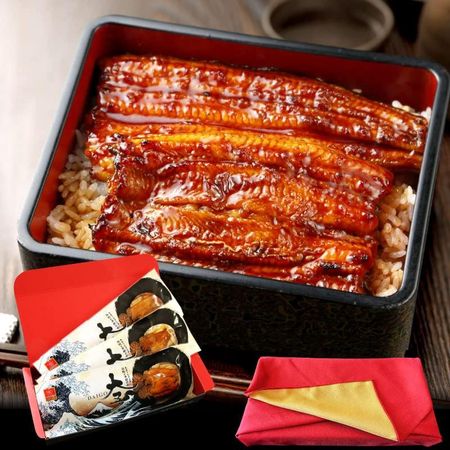Daigo Unagi Kobo Fabric Furoshiki Wrapped Domestic Eel Long Kabayaki Set of 3 120g x 3 Включает соус и японский перец Угорь Kabayaki Seafood Замороженные