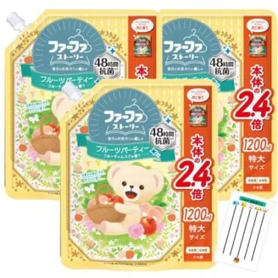 Farfa Story Кондиционер для белья Fruit Party Фруктовый мускусный аромат Сменный блок 1200 мл Набор из 3 пакетов Sakuyahime STORE Оригинальная лотерея +