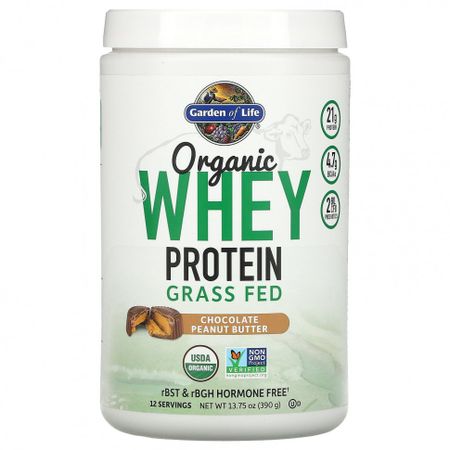 Garden of Life, Organic Whey Protein, Grass-Fed, шоколадно-арахисовое масло, 13,75 унций (390 г)