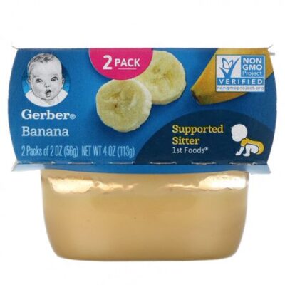 Пищевая ценностьРазмер порции: 1 баночкаПорций в упаковке: 2 Количество в 1 порции% от суточной нормыКалории40 Всего жиров0 г0%Натрий5 мг Всего углеводов10 г11%Всего сахара10 г (содержит 0 г добавленного сахара) Белки (не является существенным источником белка)0 г Калий 15%Витамин C 35%Не является существенным источником насыщенных жиров, трансжиров, холестерина, клетчатки, витамина D и железа. Для малышей, сидящих с поддержкой1st Foods® Сертификат Non GMO Project Verified Без искусственных ароматизаторов и красителейУпаковка не содержит бисфенола-А (БФА)Полезный продукт: 2/5 банана в каждой баночкеЭти бананы были выращены с использованием нашей методики Clean Field Farming™.