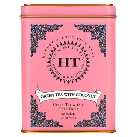 Чайные смеси · Уникальные и непривычные Зеленый чай с кокосом, ванилью, имбирем и лемонграссом Кошерный продуктСемейное сотрудничество дало жизнь HT: уникальным и нестандартным чайным смесям. HT опирается на традиции Харни в производстве высококачественных листовых чаев и трав, упакованных в удивительно гладкие пакетики-саше. Теперь вы можете наслаждаться вкусом листового чая в удобной форме чайных пакетиков.Зеленый чай с кокосомБогатый вкус ароматов Тайланда послужил источником вдохновения для этой смеси с прекрасным вкусом. Комбинация зеленого чая, лемонграсса, ванили, кокоса и имбиря.Характер напитка:Светлый зеленый чай с идеальным сочетанием мягкого кокоса и специй.Эффект:ПереносящийВремя заваривания:3 минуты в воде с температурой чуть ниже 100 градусов ЦельсияСодержание кофеина: 30-50 миллиграмм