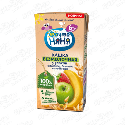 Главная » Продукты,напитки,табак Каша ФрутоНяня безмолочная 5 злаков яблоко-банан-клубника 200мл с 6мес Просмотров 4 Фрутоняня