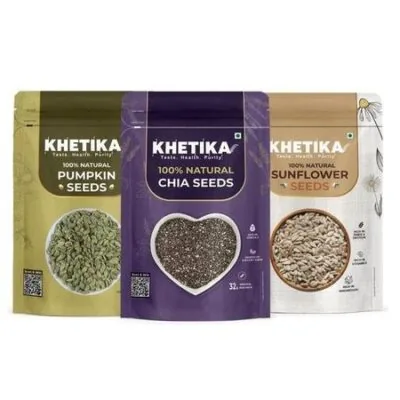 Главная » Продукты,напитки,табак Khetika Edible Seeds Combo 600gm, Chia Seeds + Sunflower Seeds + Pumpkin Seeds, Superfood Mix for Healthy Eating, Rich in Protein Fiber (200g, each) Просмотров 4 Vedic Spices